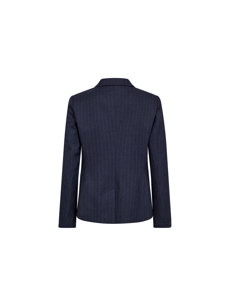 This signature MOS MOSH blazer has been reimagined with a contemporary twist. Designed in a flattering slim fit, it features embossed button closures, flap pockets, and elasticated cuffs for a subtle sporty edge. The striped pattern makes it a versatile staple, whether styled with denim or paired with the matching tailored pants for a sleek, coordinated look.