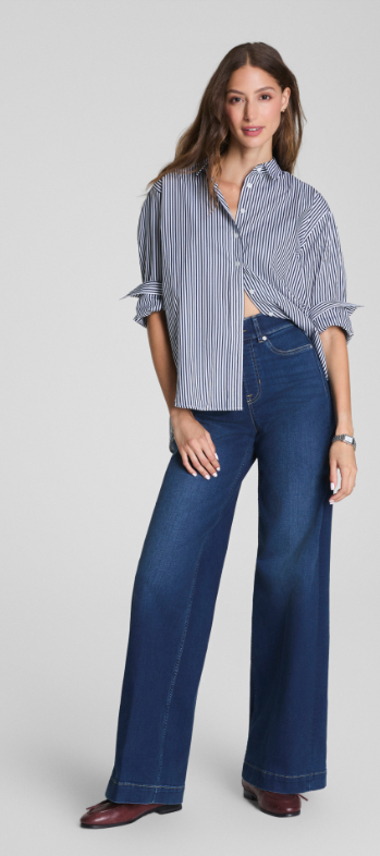 Meet the new-and-improved SPANXshape™ EveryWear denim—our signature collection of premium pull-on jeans, now made in a lighter weight denim with the perfect amount of stretch and structure. These upgraded SPANXshape™ EveryWear Wide Leg Jeans use the same built-in TummyTamer Tech™ for targeted tummy control and waist shaping you love in a high-rise wide leg pant that elongates your legs and celebrates your figure. Get the classic denim look with premium hardware, faux buttons, and no zippers or hip pockets (so no bulk!). The next generation of SPANXshape™ EveryWear is denim done right.