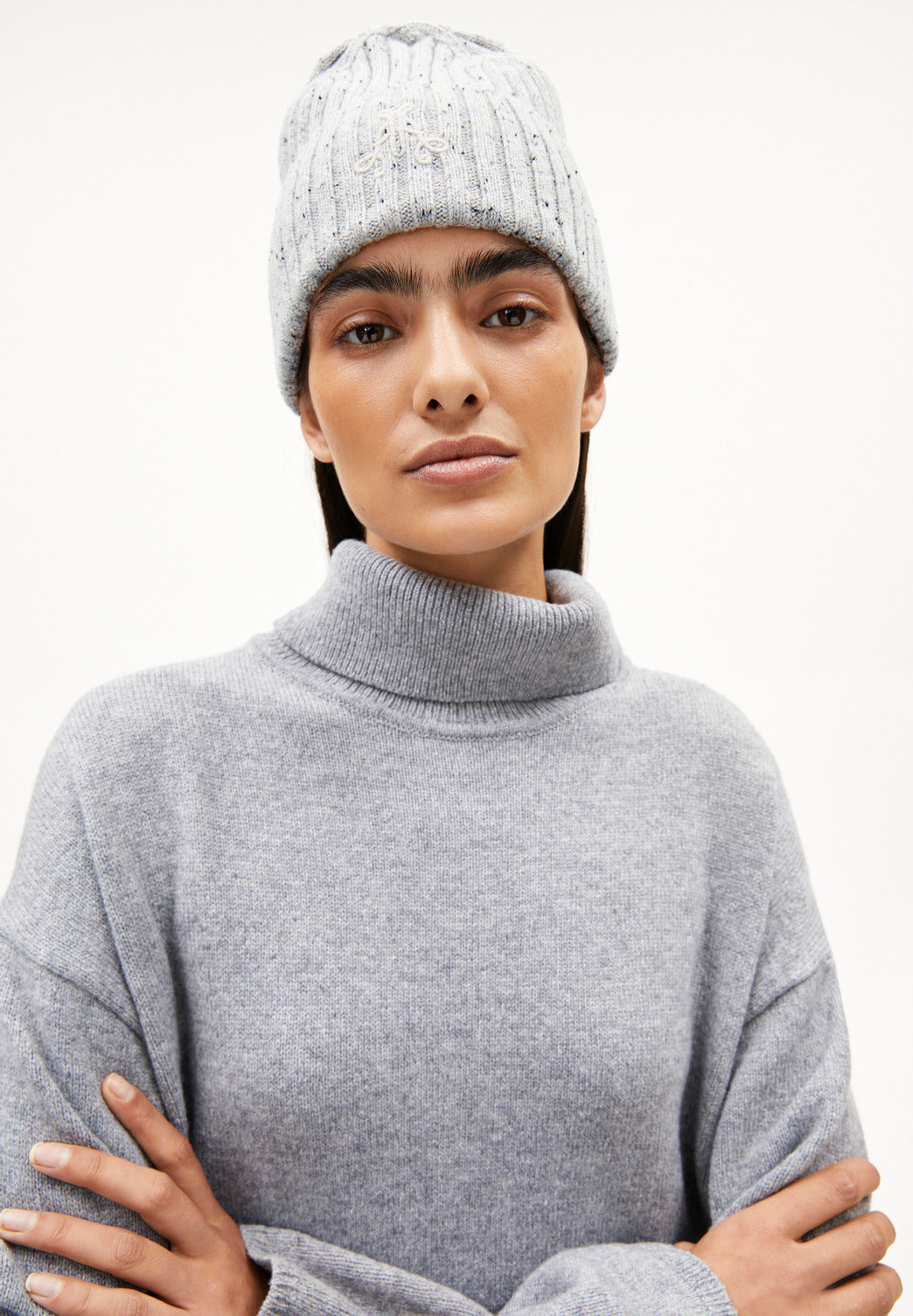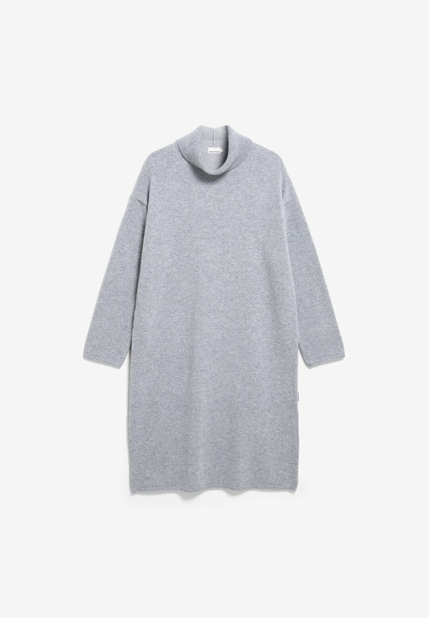 The ARADIAA knit dress with turtleneck features a wide, comfortable fit and ends just below the knee. A side slit adds extra freedom of movement and a modern silhouette. Made from organic and recycled wool.