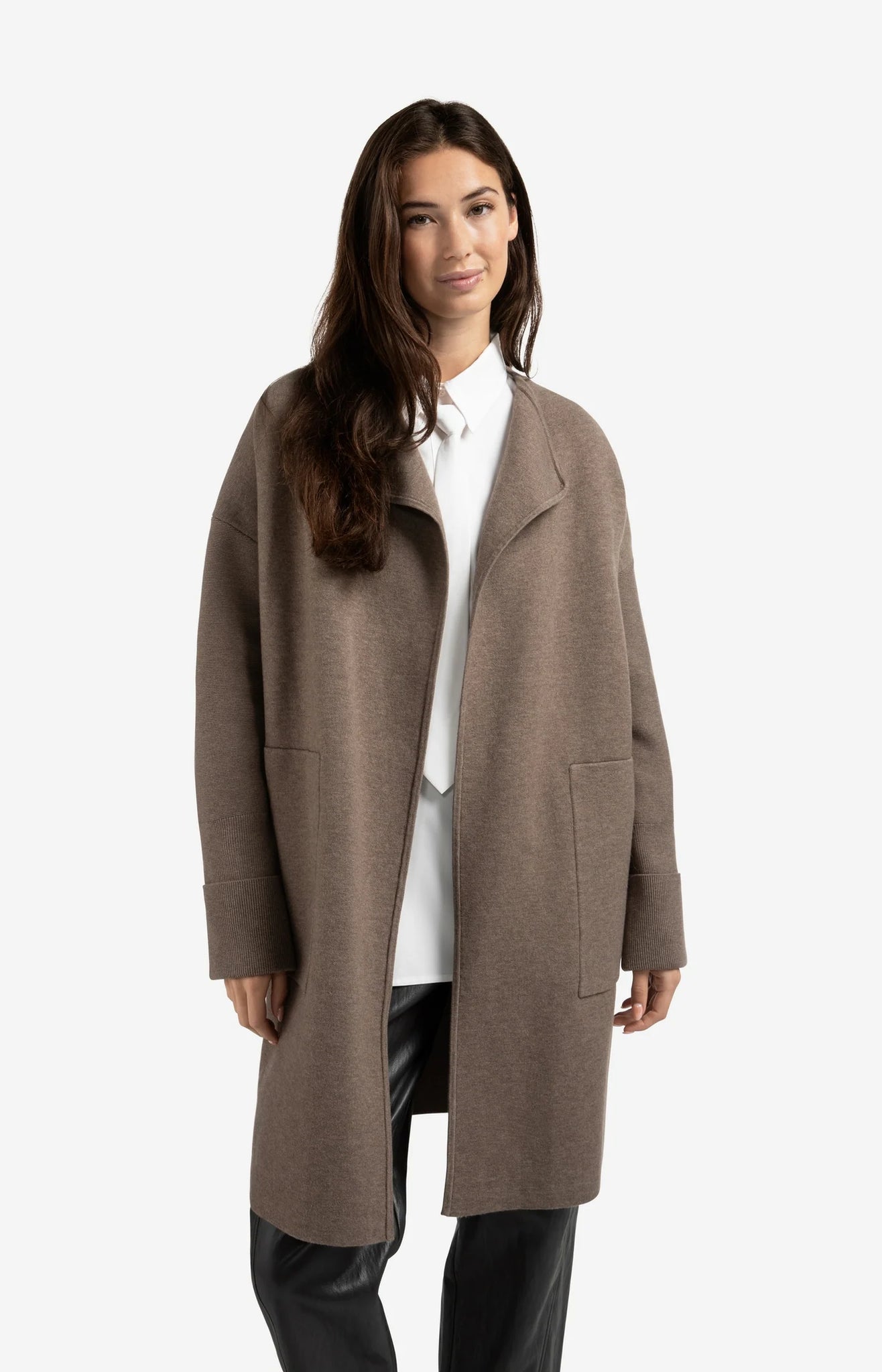 This stylish coatigan blends the structure of a coat with the comfort of a cardigan. Designed with long sleeves, a regular fit, and wide ribbed cuffs, it features an open front and large patch pockets for a relaxed look. Made from a soft knit fabric, its perfect for layering through the seasons. The model is 175 cm and wears size S.Quality Composition: 47% Polyester / 29% Acrylic / 13% Polyamide/Nylon / 6% Elastane / 5% Wool